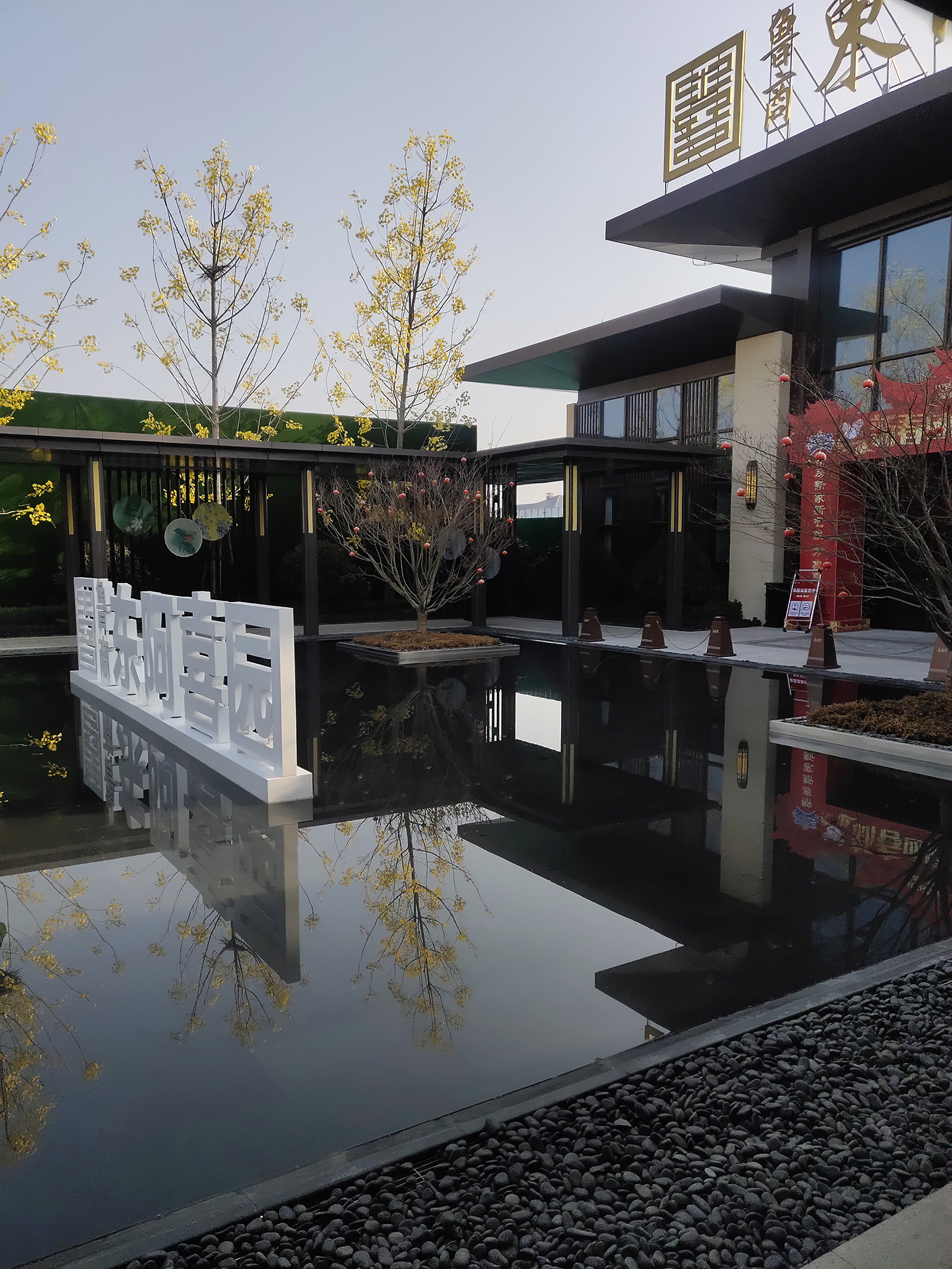 前場(chǎng)采用一禮(有鵲歸巢)、二迎(百鵲來(lái)迎)、三境(鵲廊鏡水)設(shè)計(jì)手法,入口禮儀廣場(chǎng)、景觀燈柱禮賓歸家,百鵲來(lái)迎景墻引導(dǎo)賓客進(jìn)入場(chǎng)景,通過風(fēng)雨連廊,見中軸線大尺度水景,藏風(fēng)納氣。水景大氣通透,煙波浩渺,禮儀燈光步道,靜謐舒心,大氣、精致、從容。
