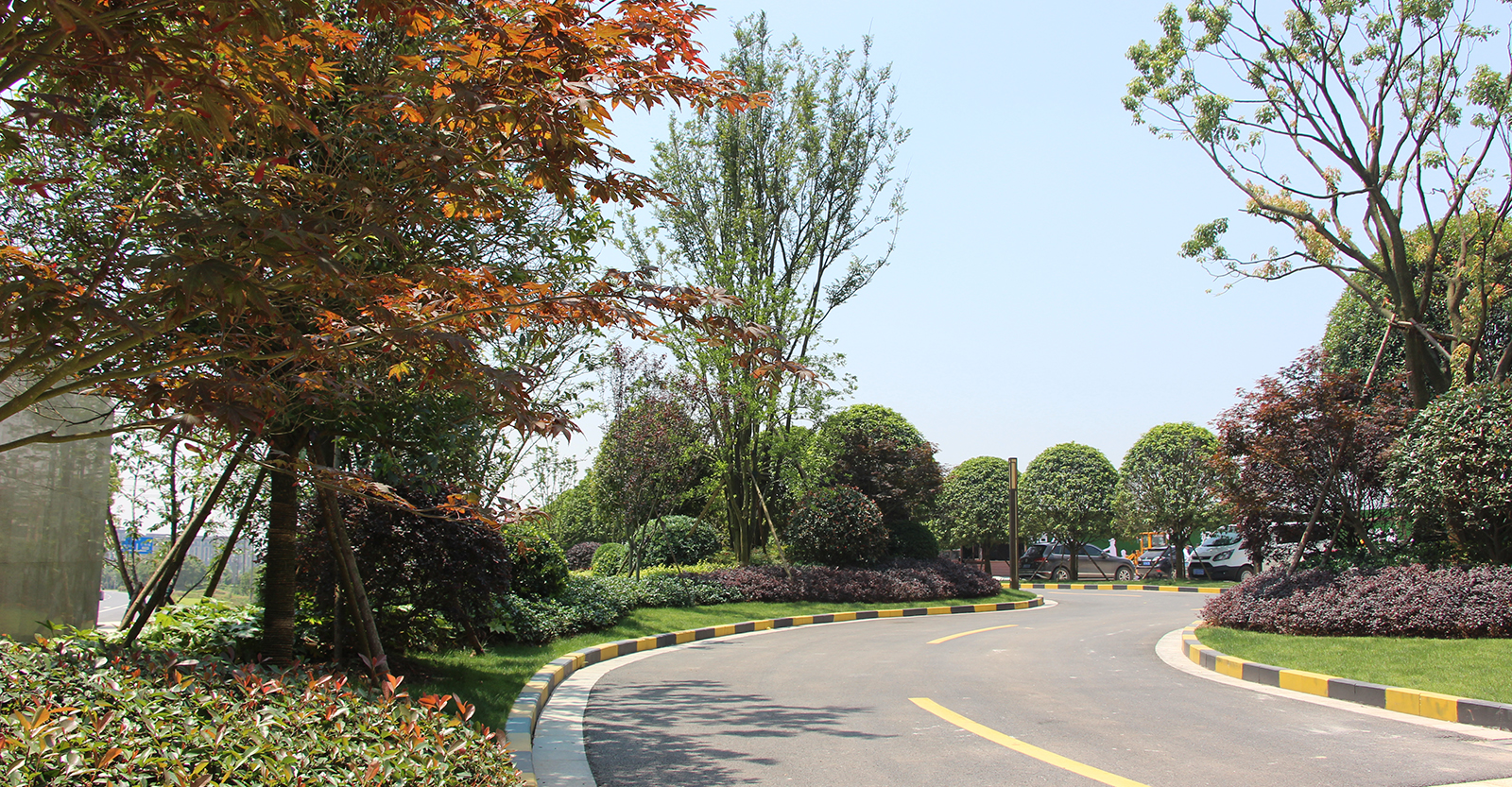 綠帶景觀婉約不失通透,層次豐富,步移景異,景致深遠
