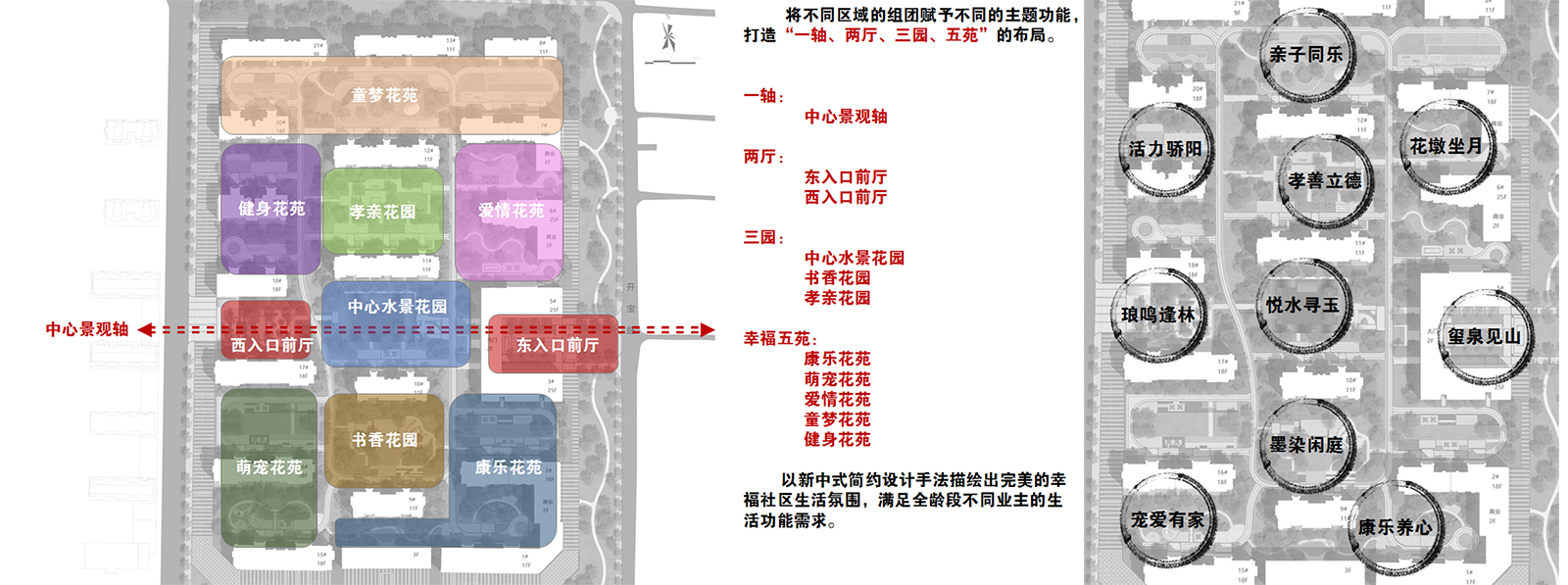 》》》》一軸:提煉東西兩大入口,結合中心花園,將其形成一條主軸線,將禮儀與尊貴通過軸線展現(xiàn)出來,一軸定鼎璽瑯恢宏氣度,東方府境,園林與人文纏綿交織,山與水二物,人于園擷趣,或風或雅,賞心悅事,以此表現(xiàn)出璽瑯府的寓意和尊貴。