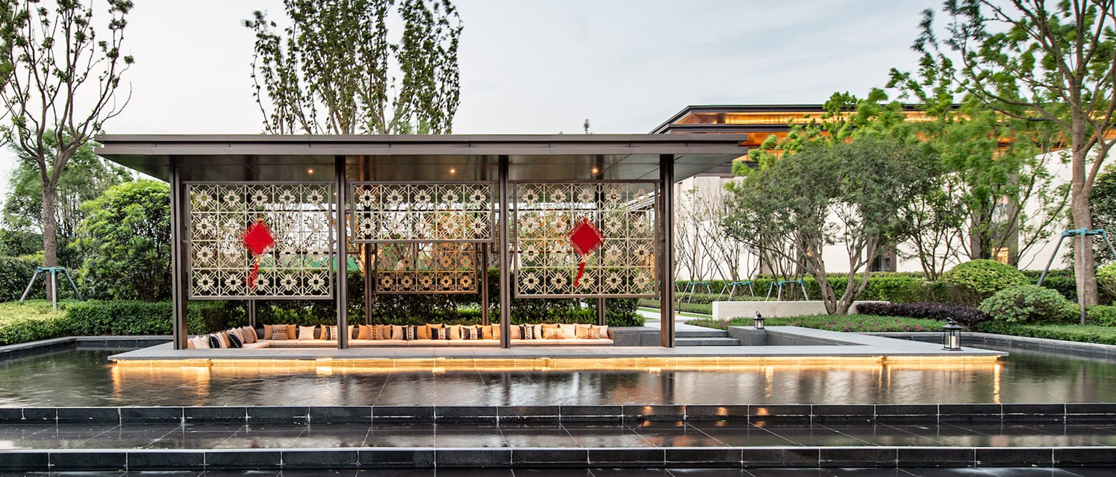 景觀延續(xù)新中式風格,采用當代的景觀設計語言表現(xiàn)傳統(tǒng)中國園林的精神內涵,將現(xiàn)代元素和傳統(tǒng)元素有機的結合在一起,以現(xiàn)代人的功能需求和審美愛好來打造富有傳統(tǒng)韻味的園林景觀,讓傳統(tǒng)藝術在當今社會得到合適體現(xiàn)。