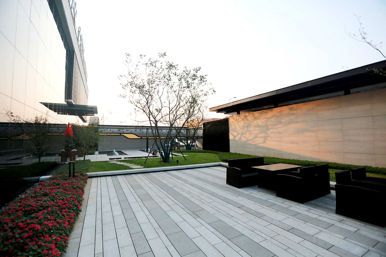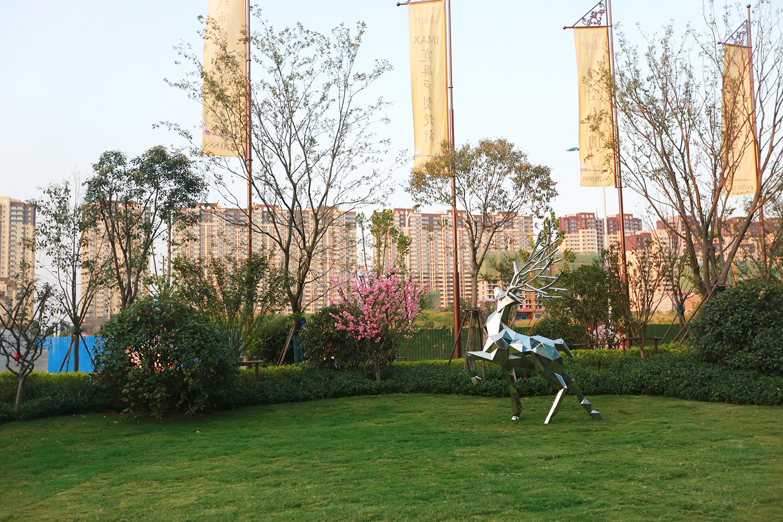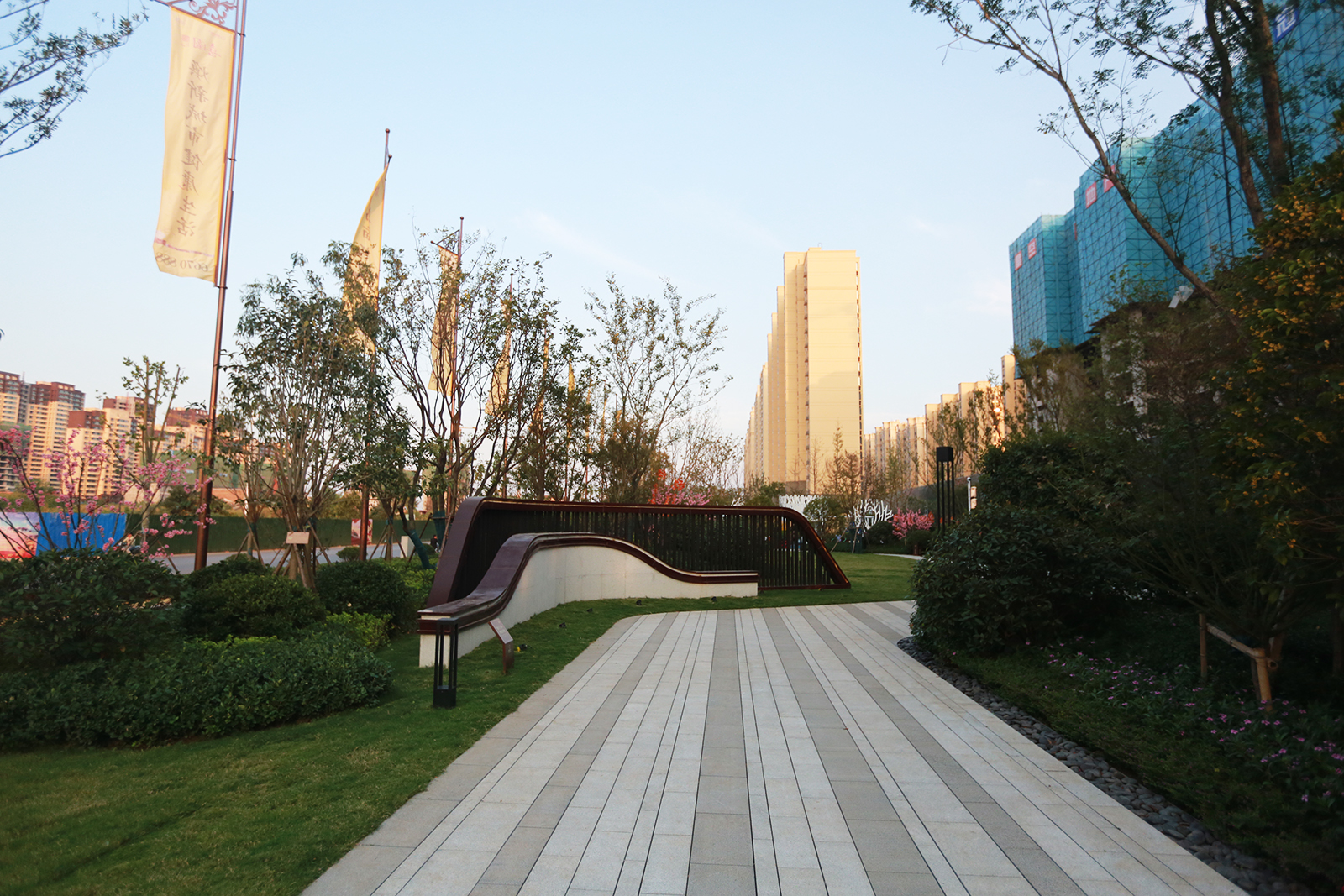 置業(yè)顧問(wèn)引導(dǎo)客戶到達(dá)休閑平臺(tái),空間開(kāi)闊,綠植分布周圍,對(duì)景草階現(xiàn)代新穎,草坪上散布的藝術(shù)裝置增添景觀亮點(diǎn),為客戶創(chuàng)造心曠神怡的身心感受,品味整個(gè)示范區(qū)的優(yōu)雅品質(zhì)。
