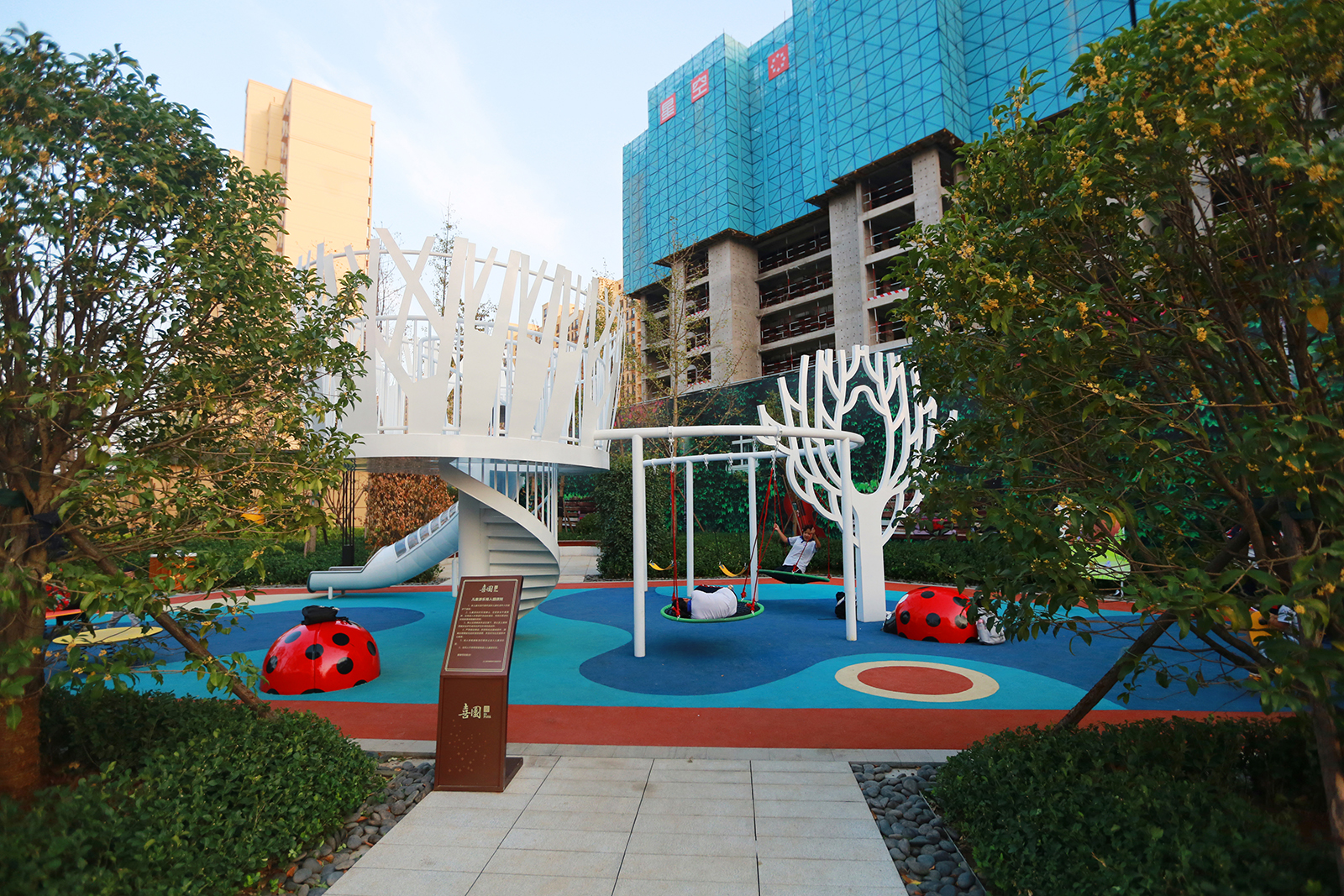 兒童樂(lè)園以親子同樂(lè),喜鵲和鳴為意境,設(shè)置兒童體驗(yàn)熱點(diǎn),同時(shí)布置家長(zhǎng)休閑看護(hù)區(qū)與洽談區(qū),園路旁的喬木夾道種植,豐富的綠化層次,都能增強(qiáng)客戶對(duì)項(xiàng)目品質(zhì)更加直觀的感受。