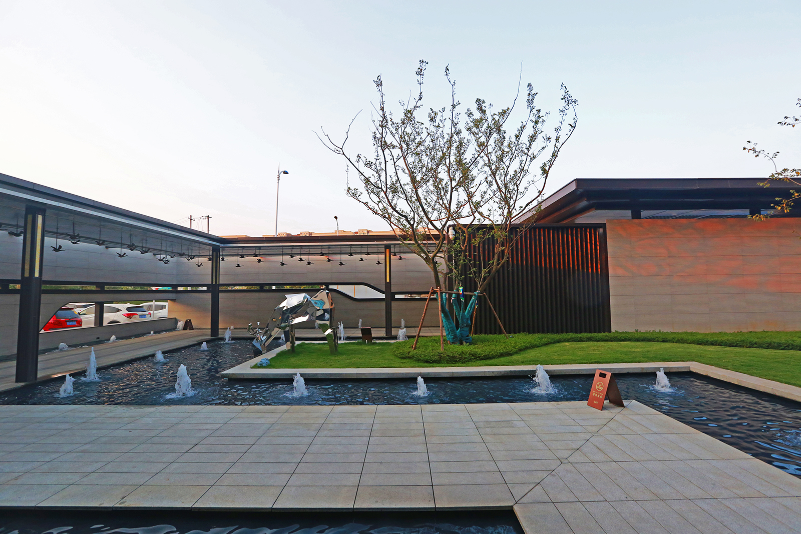 以現(xiàn)代的手法表現(xiàn)傳統(tǒng)的空間轉(zhuǎn)折關(guān)系,采用化整為零、先藏后露、引人入勝的布局,使整個(gè)空間處于多個(gè)維度之中,景觀視線不斷變化,使人流連忘返。