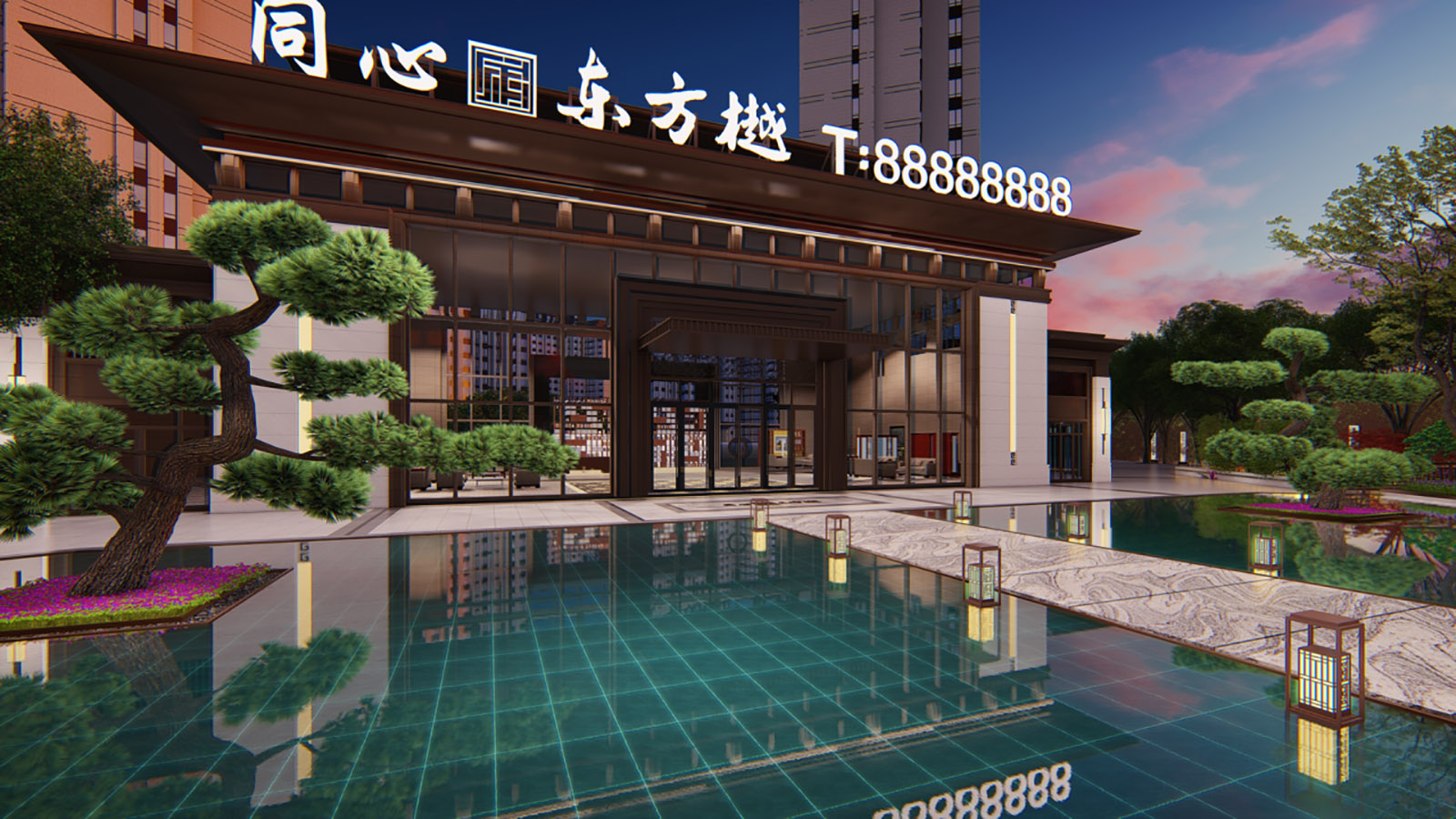 售樓部內望出如身居山川秘境,氣象萬千,胸有丘壑,目存山河。